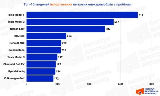 У липні найбільше вживаних електромобілів в Україну приїхало у кузові кросоверів Tesla Model Y - 711 авто. Модель утримує першість завдяки популярності у США та Європі, значному запасу ходу і просторому салону, що робить її універсальною для сімей та бізнесу. На другому місці - Tesla Model 3 (557 шт.), яка пропонує ту ж технологічну базу, але в більш компактному і динамічному кузові седана. Третю позицію зайняв Nissan Leaf (502 шт.) - класичний «вхідний квиток» у світ електромобілів для багатьох українців завдяки доступній ціні та простоті експлуатації.