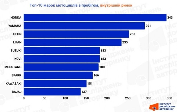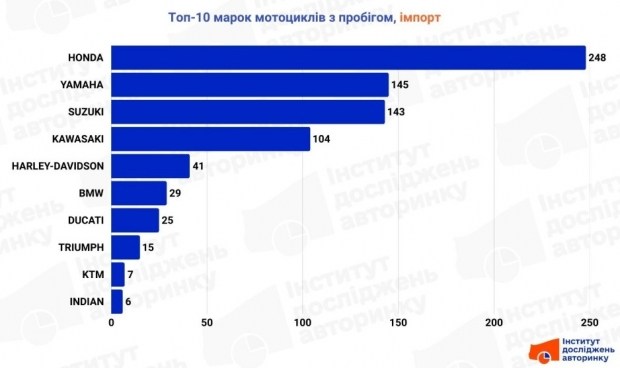 Експерти Інституту досліджень авторинку проаналізували статистику реєстрацій мототранспорту, й визначили найпопулярніші марки у трьох сегментах: імпорті вживаних, внутрішніх перепродажах та серед нових мотоциклів.