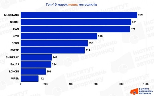 На відміну від рейтингів попередніх місяців, цього разу серед десятки марок мотоциклів, які були придбані новими, не знайшлося місця для хоча б одного виробника, що не з Китаю чи Індії.