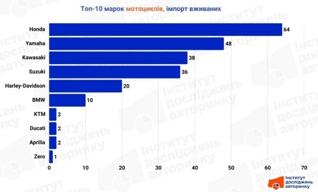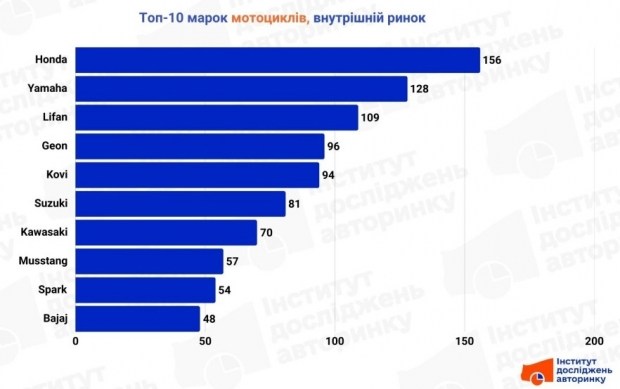 У сегменті нових мотоциклів картина кардинально відрізняється від інших частин ринку. Тут панує раціоналізм та орієнтація на первинну вартість. Понад 90% першої десятки - це бренди, що пропонують техніку для повсякденних потреб, логістики або початкового рівня позашляхових розваг. Лідером став бренд, який активно розвиває нішу ендуро та кросових мотоциклів, що відображає велику популярність активного відпочинку серед молоді.