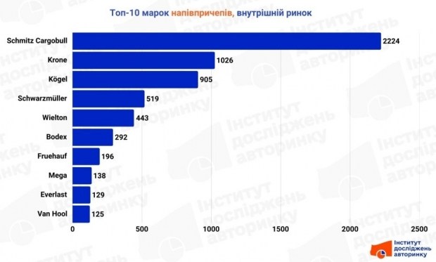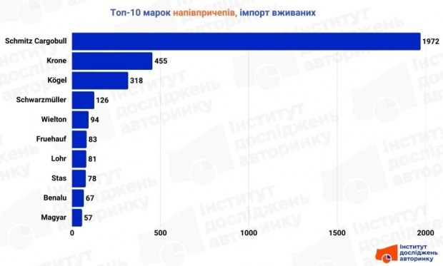 - Марки: Schmitz Cargobull тут справжній монополіст - майже 2000 причепів (майже половина всього вживаного імпорту).