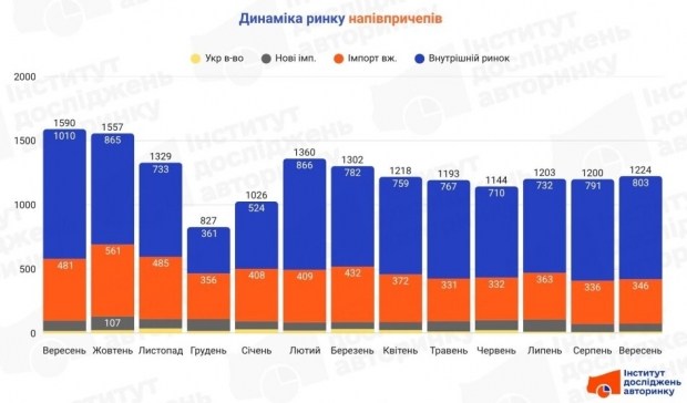 У вересні 2025 року українські перевізники придбали загалом 1224 нових та вживаних напівпричепи. Це на 2% більше, ніж було у серпні цього року, але на 23% менше відносно обсягів вересня 2024 року.