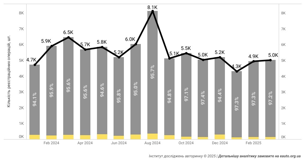 Загалом у січні-березні щомісяця в середньому дилери продавали близько 4,8 тис. нових легковиків. Що менше, ніж було в такому ж періоді торік, коли автосалони покидали близько 5,7 тис. нових легковиків.
