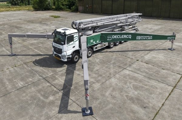 Бельгійська компанія з виробництва бетонопомп Bonneux Machinery та німецький патріарх вантажних автомобілів Daimler Truck вивели на європейський ринок величезну бетонопомпу Xanjer 6RZ73 з 73-метровим операційним радіусом дії.