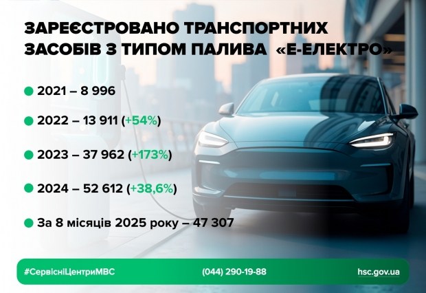 Якщо аналізувати дані цього року, то за вісім місяців 2025 уже зареєстровано 47 307 електромобілів. Враховуючи дані минулих років, кількість електрокарів на українських дорогах буде зростати.