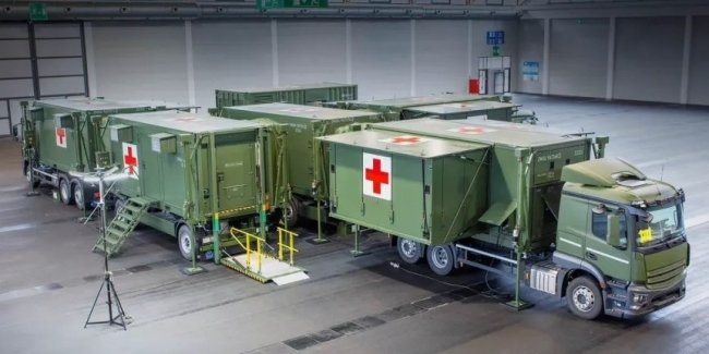 Дюссельдорфський виробничий підрозділ концерну Rheinmetall відвантажив для України вже четвертий за відліком мобільний медичний центр модульного типу з лінійки передової хірургічної групи Forward Surgical Team stations (FST).