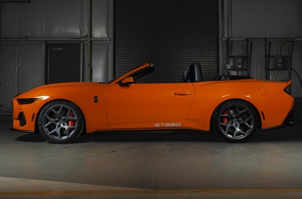 Новий GT350 Convertible став своєрідною альтернативою Ford Mustang Dark Horse SC, але з принципово іншим характером. Shelby зробила ставку не на трекові рекорди, а на емоції від керування і відчуття класичного американського маслкара з відкритим верхом, не жертвуючи при цьому потужністю. Візуально новинку легко впізнати за переробленим алюмінієвим капотом, зміненою решіткою радіатора та бампером, трисекційним переднім спліттером і фірмовими емблемами Shelby. Завершує образ стандартний спойлер типу «качиний хвіст», тоновані вікна та 20-дюймові ковані колісні диски. Для тих, хто хоче ще більш агресивний вигляд, доступне опційне фіксоване карбонове антикрило.