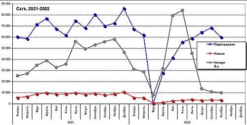 Проте вже у жовтні був зафіксований істотний спад оборуток на внутрішньому ринку і своїх покупців знайшли вже 60 тис авто. Так, падіння фіксували і на ринку нових авто, і у сегменті «свіжого» імпорту, але воно не було таким суттєвим і обмежилось (поки що) декільками процентами).