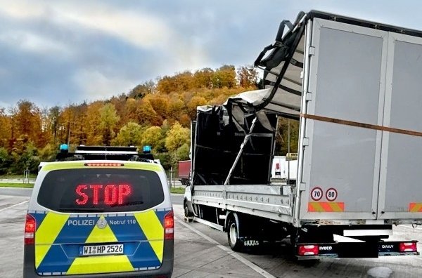 Патрульний екіпаж автомагістральної поліції з відділка Бад-Герсфельда (Гессен, Німеччина) на одному з паркувальних майданчиків помітив пошкоджену вантажівку Iveco Daily з польськими реєстраційними номерами.