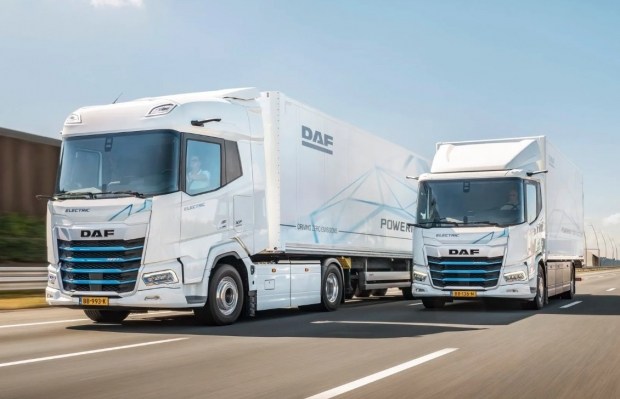 Почнемо із моделей DAF XD/XF Electric. Серійний випуск цих машин розпочався у вересні цього року. Це шасі 4х2 та 6х2, а також сідельні тягачі 4х2. Акумуляторні батареї ємністю до 525 кВт-год забезпечують запас ходу до 500 км. Більше того, у разі проміжної зарядки щоденний пробіг може досягати 1000 км. Повна вага автопоїзда - до 50 т.