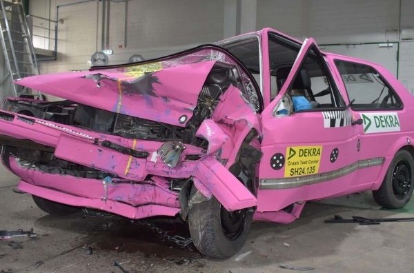 Зазначається, що для цього незвичного тесту Dekra знайшла 36-річний хетчбек у відмінному технічному стані. У своєму центрі краш-тестів у Ноймюнстері компанія розбила його об бар'єр на швидкості близько 60 км/год, імітуючи процедуру лобового краш-тесту, яку Euro NCAP використовувала до 2020 року.