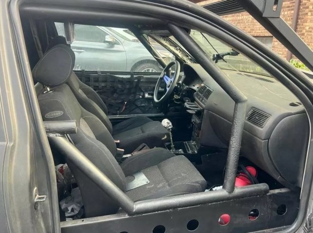 Тюнінг Volkswagen Golf IV також включає трубчастий каркас безпеки в салоні та спортивне кермо. Важіль коробки передач прикрасили фігуркою черепа.