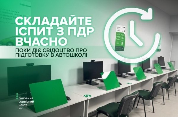 Свідоцтво про закінчення теоретичного навчання в автошколі дійсне 1 рік. Це означає, що упродовж цього терміну необхідно скласти іспит з Правил дорожнього руху в сервісному центрі МВС.