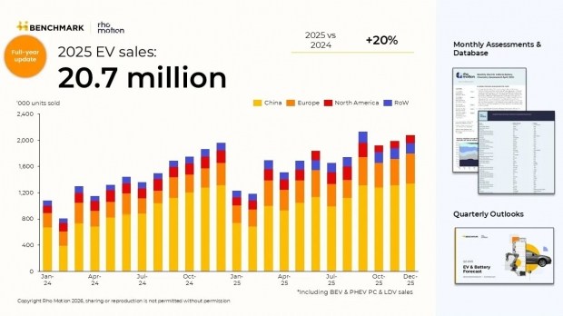 Світовий ринок електрифікованого транспорту у 2025 році не лише не сповільнився, а навпаки - продемонстрував прискорення зростання, всупереч поширеним наративам про «охолодження» попиту. За даними Rho Motion, глобальні продажі електромобілів і плагін-гібридів за підсумками року сягнули 20,7 мільйона одиниць. Це приблизно на 20% більше, ніж у 2024-му, і означає приріст на 3,6 мільйона автомобілів - більше, ніж роком раніше, що прямо вказує на прискорення, а не уповільнення ринку.