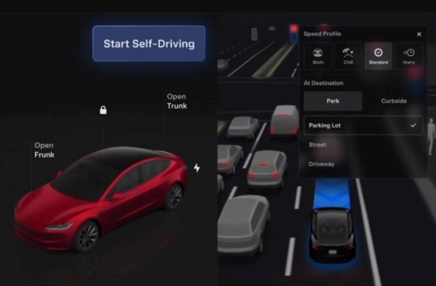 Ще одна зміна - можливість запуску FSD (Supervised) у будь-який момент, навіть під час руху. Тепер це можна зробити дотиком до екрана або натисканням правої прокрутки на кермі. Також водії можуть безпосередньо з центрального дисплея змінювати параметри руху, зокрема профіль швидкості та тип прибуття.
