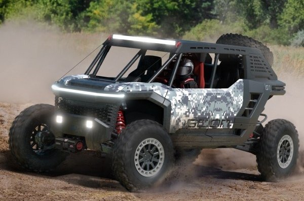 Екстер'єр концепта формує враження міцності та готовності до випробувань. Він отримав лебідку, каркас безпеки, що відповідає вимогам FIA та придатний для участі у змаганнях за стандартами SCORE і FIA, запасне колесо, винесене на корму, спортивні колісні диски та позашляхові шини з широким профілем. Також виробник застосував червоні гальмівні супорти, вузькі смужки світлотехніки та загальний утилітарний стиль, який підкреслює функціональність, а не декоративність. Салон розрахований на чотирьох осіб та спроєктований без надмірностей - акцент зроблено на жорсткість конструкції, простоту та надійність, щоб машина могла працювати в умовах, де не до естетичних деталей.