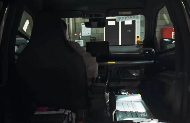 Не менш цікаво виглядає інтер'єр прототипу, де залишили лише одне сидіння - водійське. Панель приладів також взята у Yaris, і зроблено це не випадково. Річ у тім, що для перших випробувань інженери демонтували пасажирські сидіння, аби звільнити місце для акумуляторних блоків. Пізніше батарейні модулі вдалося розмістити під задніми сидіннями, а допоміжну батарею інтегрували під підлогою багажника. Це дозволило зберегти обсяг багажного відділення на рівні 231 літра, що є критично важливим для автомобіля А-класу.