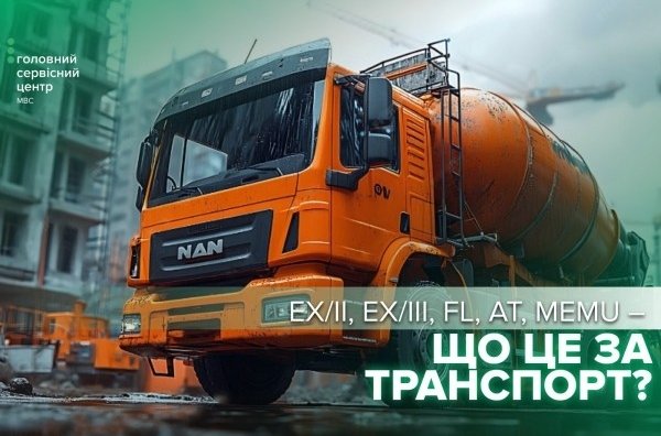 Транспортні засоби для перевезення небезпечних вантажів: EX/II, EX/III, FL, AT, MEMU
