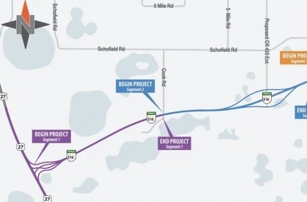 Управління швидкісних автомагістралей Центральної Флориди (CFX) будує SR 516 трьома сегментами.