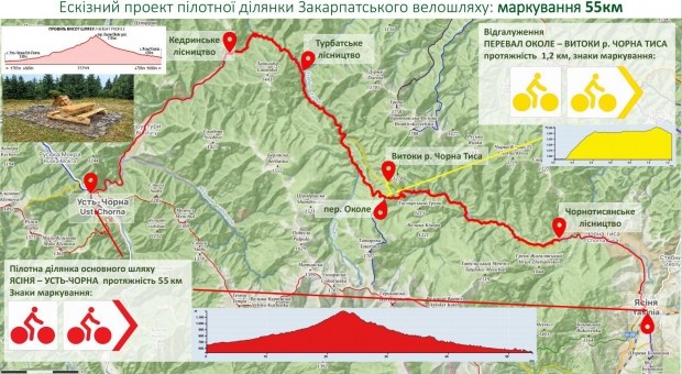 Як повідомили в Управлінні туризму та курортів Закарпатської ОВА 1 вересня, ділянка «Усть-Чорна - Ясіня», протяжністю 55 км, починається поблизу витоків Чорної Тиси та перевалу Околе. Вздовж маршруту розміщені об'єкти для відпочинку та рекреації, а також туристичні садиби, велопарковки, місця для кемпінгів, оглядові майданчики та локальні гастрономічні атракції.