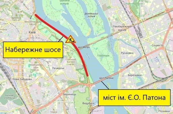 У зазначені дні з 8:00 до 20:00 дорожники ремонтуватимуть проїжджу частину на ділянці від транспортної розв'язки мосту імені Є. О. Патона в напрямку Поштової площі. На час виконання робіт рух транспорту частково обмежуватимуть почергово однією смугою.