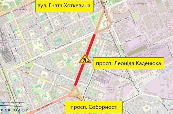 З 18 по 20 серпня на проспекті Леоніда Каденюка частково обмежуватимуть рух транспорту. Як повідомили у КК «Київавтодор», дорожники КП ШЕУ Дніпровського району ремонтуватимуть верхній шар асфальтобетонного покриття по всій довжині проспекту в обох напрямках.