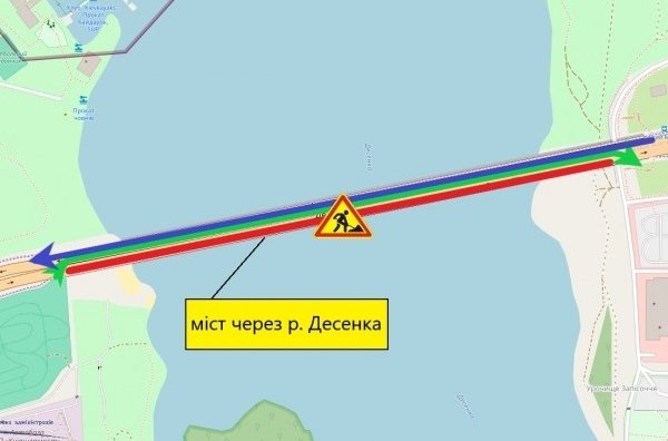 Зокрема, із 4 квітня та орієнтовно до 31 серпня частково обмежать рух мостом через річку Десенка. Як повідомили у КП «Київавтошляхміст», роботи виконуватимуть для відновлення технічного стану споруди та забезпечення її безпечної експлуатації. У цей період дорожники проводитимуть ремонт несних конструкцій перехідних прогонів. Рух транспорту в напрямку з правого на лівий берег Дніпра буде обмежено, натомість проїзд організують зустрічною частиною мосту - по дві смуги в кожному напрямку.