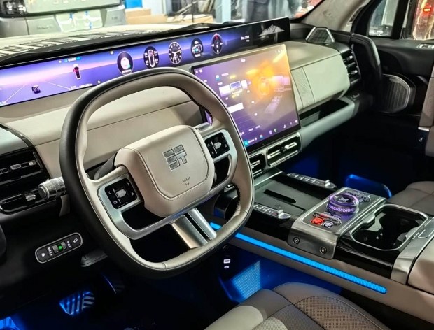 Попри брутальний характер, інтер'єр позашляховика орієнтований на комфорт і сучасні технології. У салоні встановлено 35,4-дюймовий панорамний дисплей, преміальну аудіосистему Lescon, а також передні крісла з підігрівом, вентиляцією, масажем і висувними підставками для ніг.