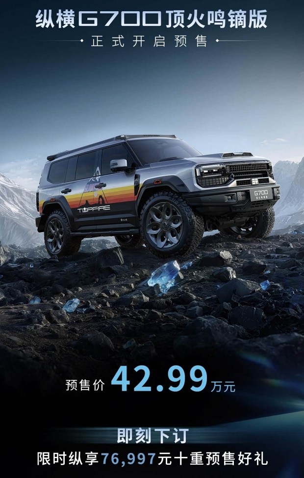 Бренд Jetour, що належить китайській компанії Chery, відкрив попередні замовлення на нову екстремальну версію свого флагманського позашляховика - Jetour Zongheng G700 Dinghuo Ming Dysprosium Edition. Це заводська модифікація, створена спеціально для складного бездоріжжя, а її попередня ціна становить приблизно 59 500 доларів США.