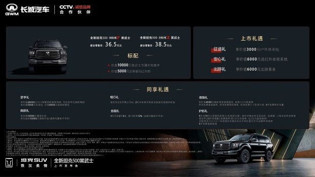 Візуально Tank 500 Black Warrior отримав повністю затемнений екстер'єр із чорними фарами, решіткою радіатора, колісними дисками, рейлінгами та підніжками. Контраст додають червоні гальмівні супорти, які підсилюють спортивний характер образу. Такий підхід фактично перетворює позашляховик на заводську альтернативу тюнінг-проєктам, але без ризиків для сертифікації та експлуатації.