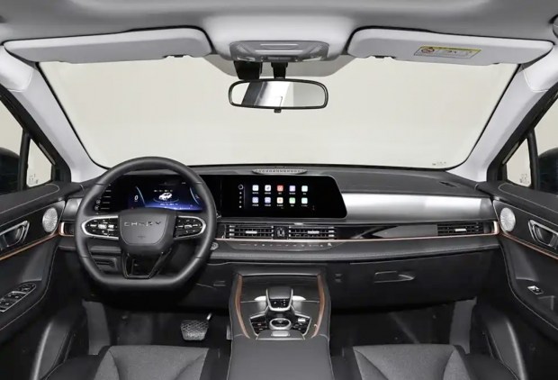 Салон Chery Omoda 2025 виконаний у темних відтінках, які підкреслюються яскравими червоними акцентами, що додають динамічності та спортивного стилю. Центральне місце на передній панелі займають два великих екрани діагоналлю 10,25 дюйма: один використовується як цифрова приладова панель, інший - для мультимедійної системи з підтримкою сучасних телематичних функцій.