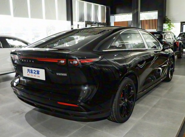 Силует авто виконано у форматі чотиридверного купе зі спадаючою лінією даху, що створює візуальний ефект спортивності. На кормі - світлова смуга, яка з'єднує обидва задні ліхтарі, збережено півкруглі елементи оптики, характерні для Mazda, а також встановлено невеликий спойлер типу «качиний хвіст» і дифузор, які підсилюють динамічний характер моделі.