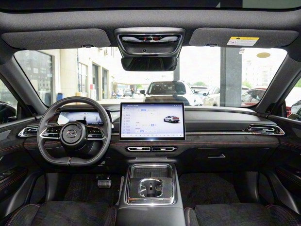 Інтер'єр Mazda EZ-6 виконано у мінімалістичному стилі, з акцентом на технології. Центральне місце займає «плаваючий» 14,6-дюймовий мультимедійний екран, доповнений 10,1-дюймовою цифровою панеллю приладів і 50-дюймовим AR-HUD-проєкційним дисплеєм, який відображає навігацію та інформацію про рух безпосередньо на лобовому склі. У салоні встановлено 14 динаміків Sony, 64-кольорову атмосферну підсвітку та крісло водія з ефектом «нульової гравітації», що забезпечує максимальний комфорт у далеких поїздках.
