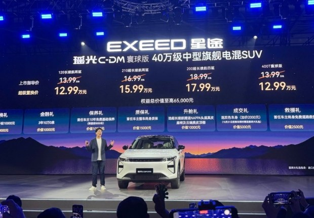 Базова версія Exeed RX оснащена 1,5-літровим бензиновим двигуном потужністю 156 к.с. і 220 Нм, який працює разом із двома електромоторами та одноступеневою трансмісією DHT. Сумарна віддача цієї гібридної системи сягає 360 к.с. і 530 Нм. Така конфігурація дозволяє розганятися до 100 км/год за 7,9 секунди, що є гідним показником для середньорозмірного SUV. Акумуляторна батарея ємністю 19,53 кВт-год забезпечує до 120 км пробігу в електричному режимі за китайським циклом CLTC. Ціна такої версії складає 139,9 тисяч юанів (приблизно 19,200 доларів США).