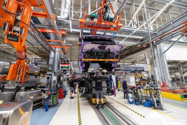 Компанія MAN Truck & Bus офіційно запустила серійне виробництво електровантажівок на своєму головному заводі у Мюнхені. Особливість нової виробничої стратегії полягає в тому, що електричні моделі виготовляються на одній лінії з дизельними аналогами, що дозволяє заводу швидко адаптуватися до ринкових потреб і забезпечувати гнучкість у логістиці та управлінні потужностями. Цей підхід дозволяє одночасно випускати як традиційні, так і електричні машини без необхідності створення окремих виробничих цехів.