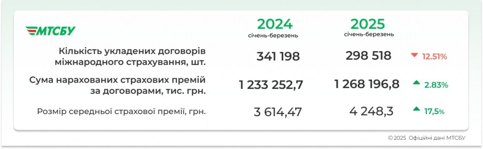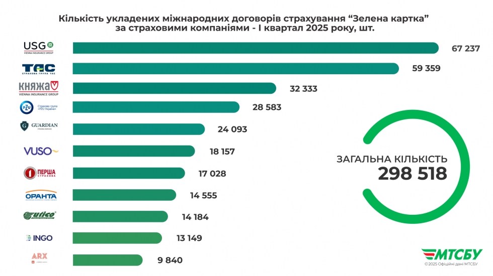 За І квартал 2025 року українські автовласники уклали 298 518 міжнародних договорів страхування «Зелена картка», що на 12,51% менше, ніж за аналогічний період минулого року. Однією з причин цього зниження є зміна умов перебування транспортних засобів з українською реєстрацією в деяких країнах Європи, що змусило їх власників переоформлювати автомобілі на місцеву реєстрацію та користуватися послугами іноземних страхових компаній.