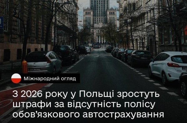 З початку 2026 року власників транспортних засобів у Польщі очікує суттєве зростання розмірів штрафу за відсутність чинного поліса обов'язкового страхування цивільної відповідальності водія.