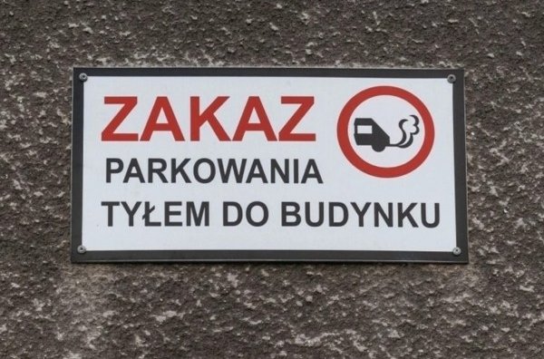 Проте тут виникає правова колізія. Знаків, які б офіційно забороняли ставити автомобіль заднім ходом до будинку, у польських правилах дорожнього руху не існує. Тому таблички з написом «zakaz parkowania ty?em» є лише проявом доброї волі мешканців, а не юридично обов'язковою вимогою. Водій може їх ігнорувати, однак це не завжди означає безкарність.