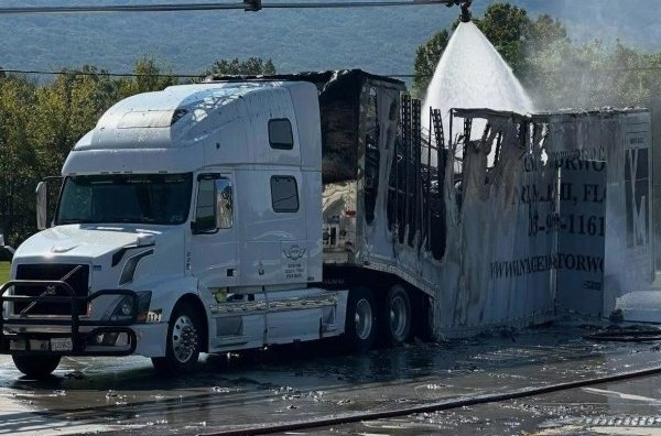 Автовоз із суперкарами загорівся на трасі біля міста Чаттануґа, що в штаті Теннессі. Автомобілі мали взяти участь у щорічному автопробігу Crown Rally із Бостона до Аталанти. Про це повідомляє сайт Carscoops.