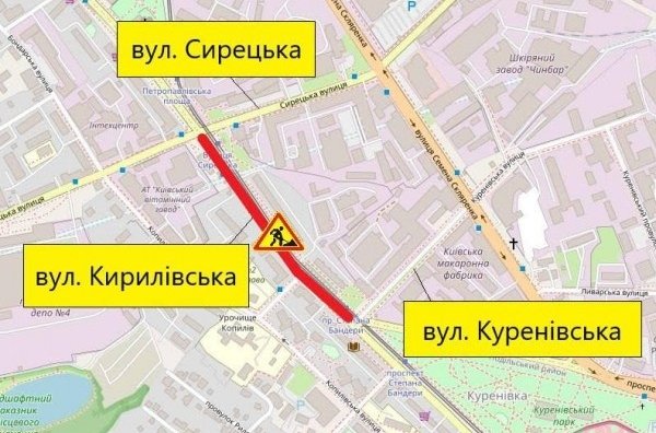 Крім того, 21 вересня, з 8:00 до 21:00, перекриють ділянку вул. Максима Кривоноса від просп. Валерія Лобановського до вул. Преображенської для проведення ремонту.