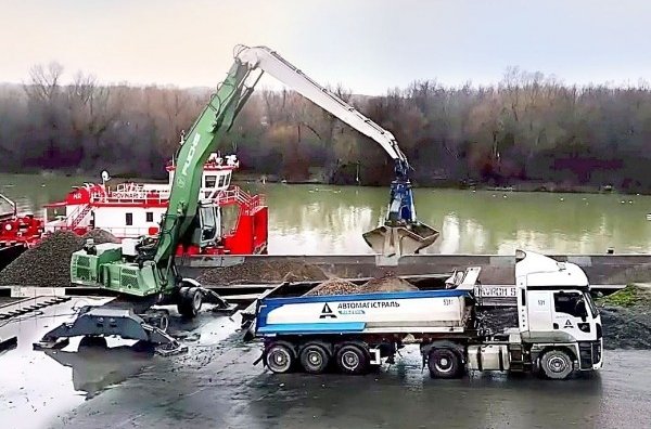 На розміщеному поруч майданчику повним ходом йде накопичення інертних матеріалів. Щебінь фракції 0-63 для влаштування дорожньої основи надходить баржами з Румунії через порт Джурджулешти та залізницею з України.