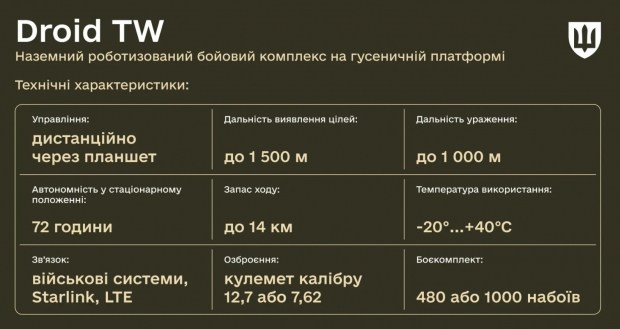 Вітчизняний наземний робот Droid TW вогневої підтримки в іноземних ЗМІ вже порівняли із роботом, показаним у фантастичному фільмі «Термінатор». Він такий же брутальний і дуже загрозливий для ворогів.