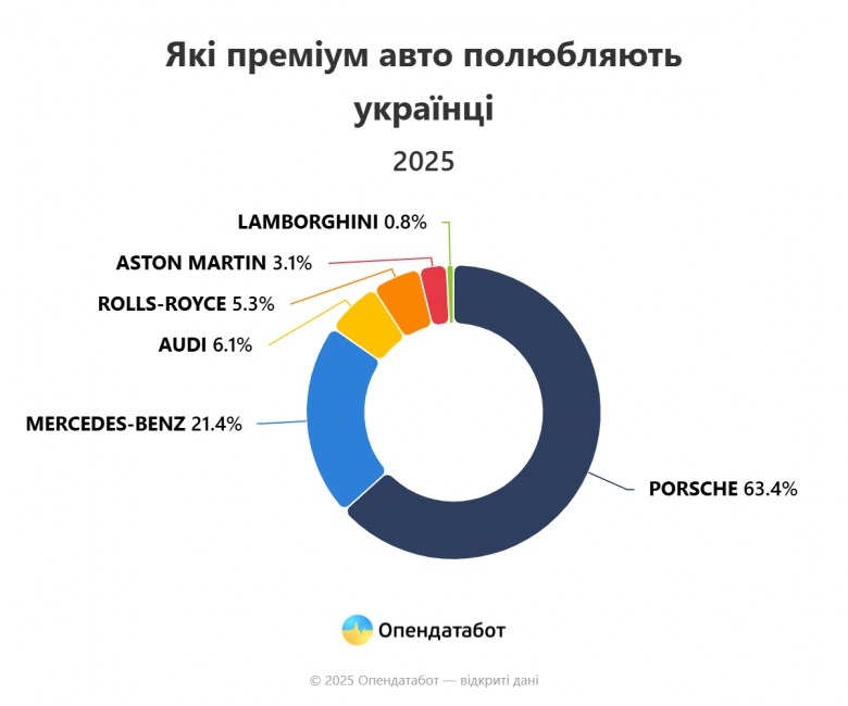 Найдорожчі авто в Україні, куплені у 2025 році - кросовер Rolls-Royce Cullinan Black Badge за 700 000 доларів та електромобіль Rolls-Royce Spectre за $600 000. Найбільшою популярністю користуються люксові марки Porsche та Mercedes-Benz.