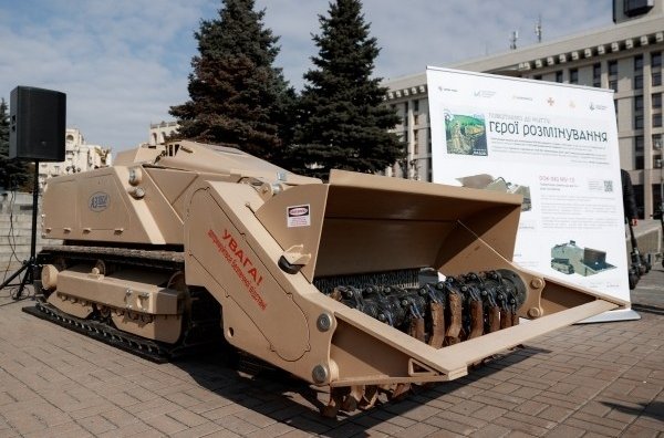 Під час події відвідувачі вперше змогли побачити у відкритому доступі машину розмінування цієї моделі. 20-тонна система, оснащена спеціалізованими механізмами для знешкодження вибухонебезпечних предметів, була представлена в центрі Києва лише на один день - перед поверненням до роботи.