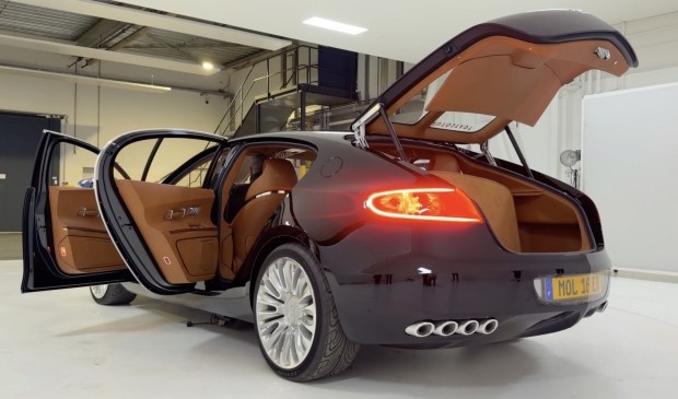 Авто вирізняється ретростилем як зовні, так і всередині. Чотиримісний салон оздоблений дорогою шкірою і деревом, а класичні циферблати приладів поєднуються із сенсорними екранами спереду та ззаду.