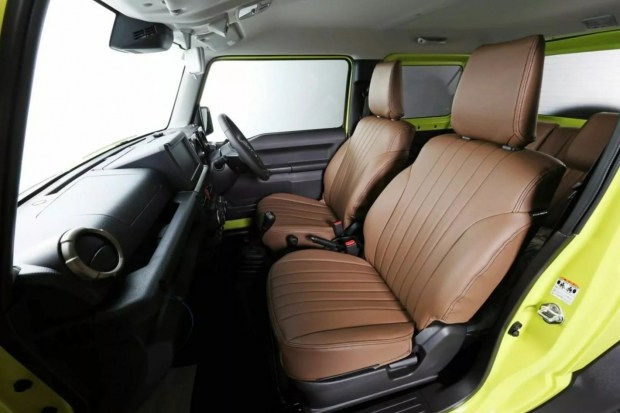 Салон Suzuki Jimny оздоблений штучною шкірою, а на підлогу поклали нові килимки. Також встановили покращену акустику та сучасну мультимедійну систему Alpine із 7-дюймовим тачскріном та навігацією.