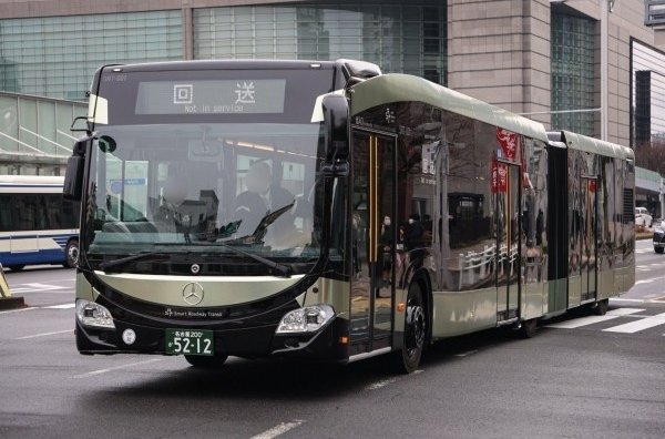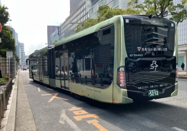Слід сказати, що зчленовані автобуси є рідкістю для японського ринку. Звичайно, даний Citaro оснащений правим кермом. Довжина автобуса становить 18 125 мм, а ширина 2550 мм, що на 50 мм більше за японські стандарти. Невипадково ці параметри позначені на задній стінці. Автобус розрахований на повну масу 24240 кг. Очевидно, на машині застосована дизельна силова установка.