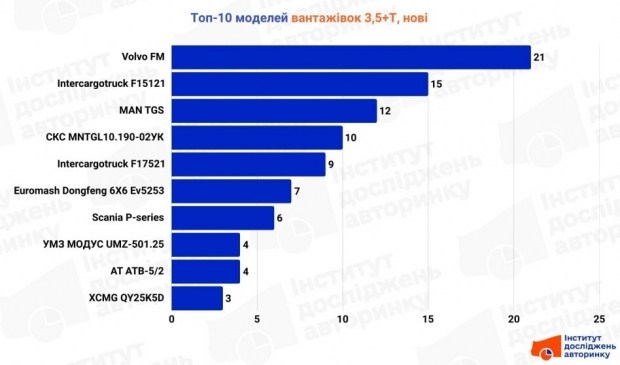 Експерти Інституту досліджень авторинку проаналізували статистику реєстрацій транспортних засобів в Україні й визначили найпопулярніші моделі у трьох сегментах вантажівок масою понад 3,5 тонни (окрім сідлових тягачів): імпорті вживаних, внутрішніх перепродажах та купівлі нових машин, в тому числі - переобладнаних в Україні.