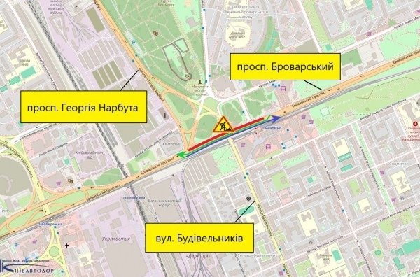 Від 31 березня до 15 травня частково обмежуватимуть рух транспорту Броварським проспектом