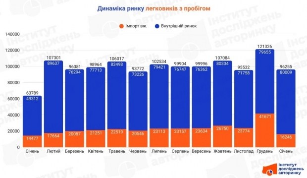 Загалом у січні 2026 року було укладено 80 009 угод купівлі-продажу вживаних легковиків.